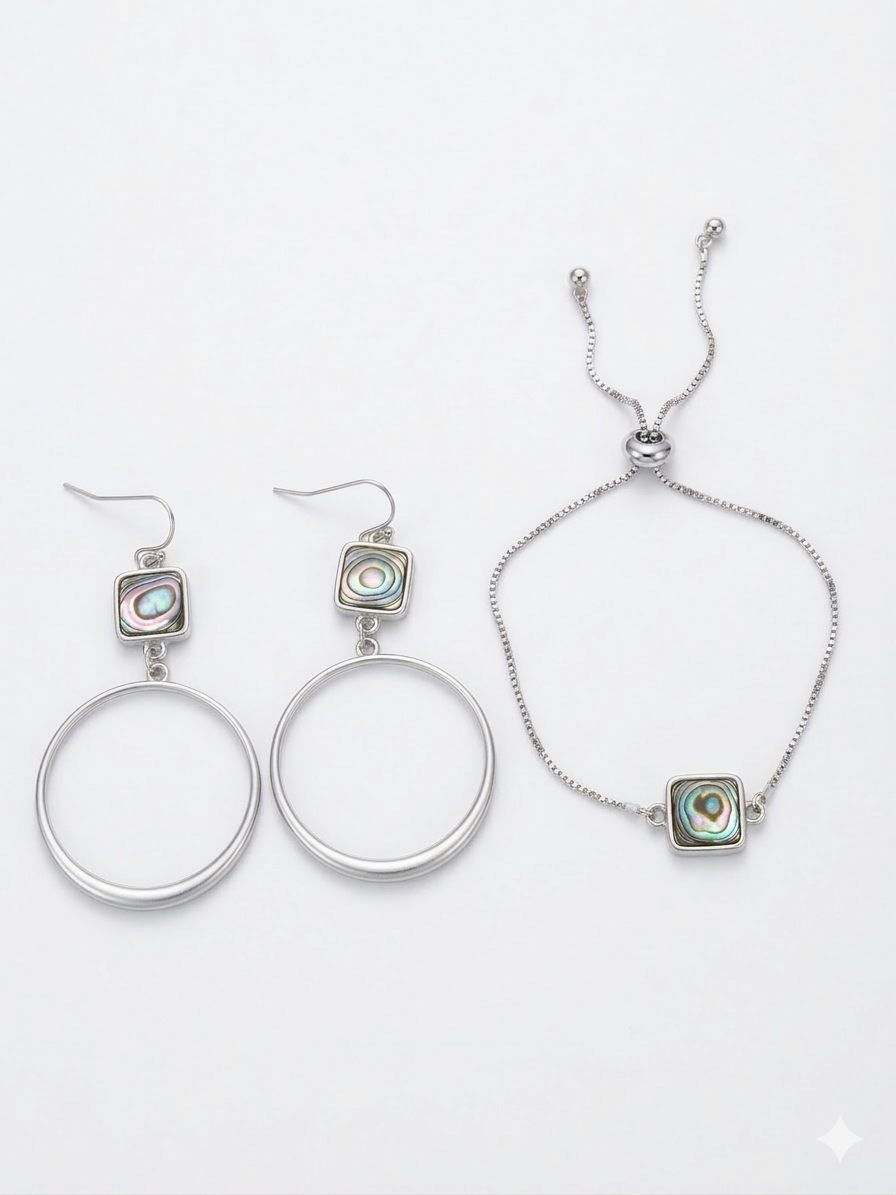 Stella Abalone Bracelet & Earrings in Silver 2pc set