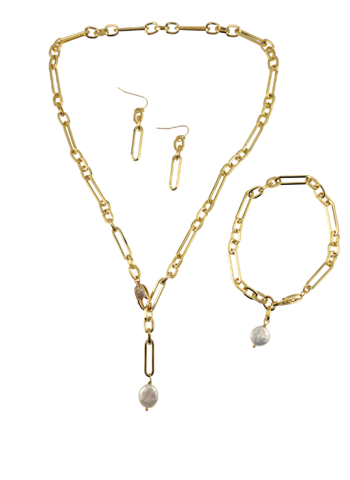 This adjustable Paperclip bracelet with a pearl drop is perfect for any occasion and can be layered with other bracelets and worn with the Bianca lariat necklace.