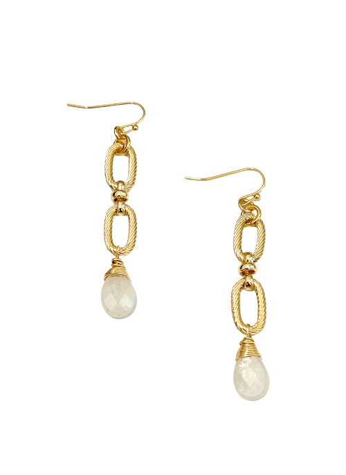 Reagan Earrings in Gold is perfect layered or worn alone and comes in 2 sizes with beautiful genuine moonstone teardrops.